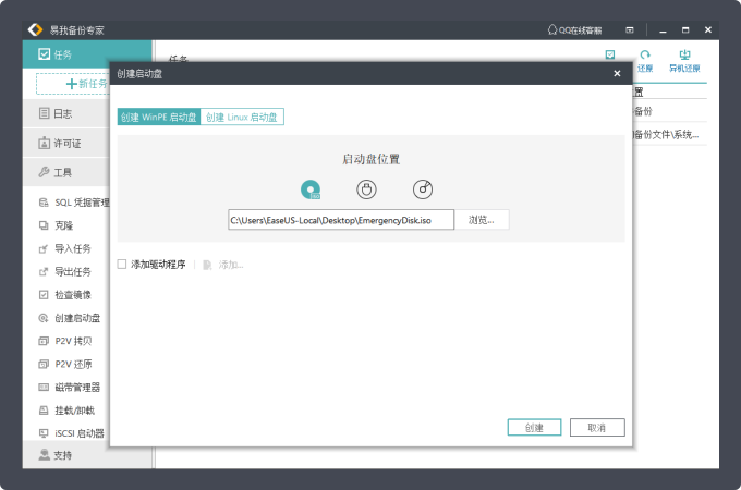 当系统出现故障无法启动时,尽快让系统重新启动非常重要,易我备份专家可以创建一个WinPE/Linux可开机磁盘,在系统无法启动时能通过可开机磁盘紧急启动系统,可以有效避免备份中断。