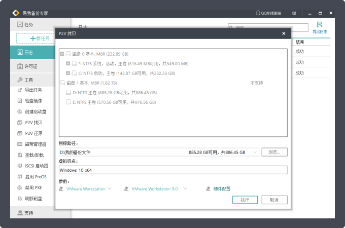 P2V 复制、P2V 还原。转换系统或系统备份到虚拟机。